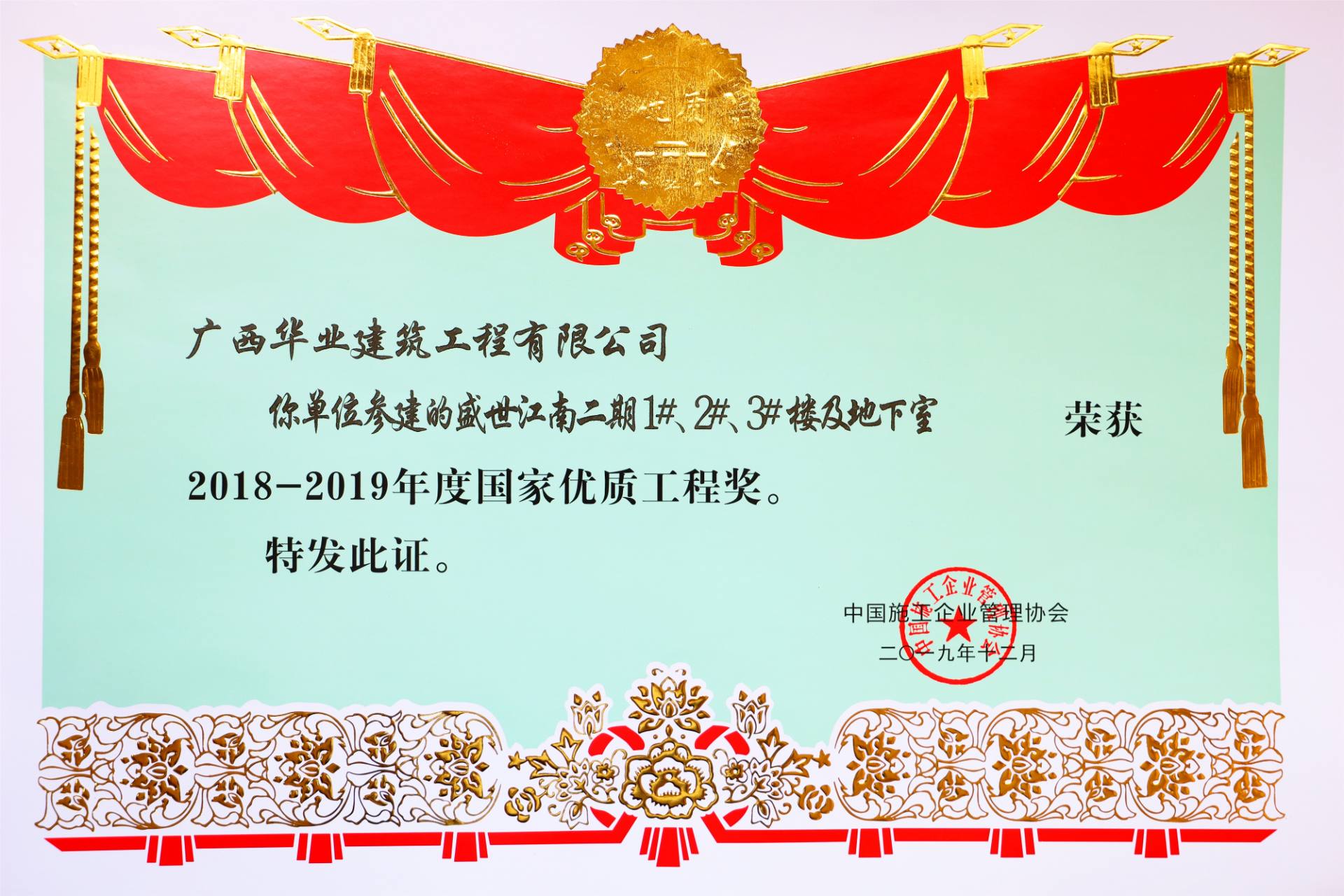項目榮譽:國家優(yōu)質(zhì)工程獎 -